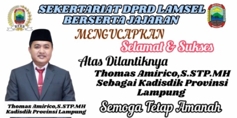 “Kami percaya, di bawah kepemimpinan Bapak Thomas, dunia pendidikan di Lampung akan semakin berkembang dan memberikan kontribusi lebih besar di bidang pendidikan. Semoga diberikan kelancaran serta keberkahan dalam menjalankan amanah ini,” ujar Rita Maelanie mewakili seluruh jajaran sekretariat DPRD dan staf.