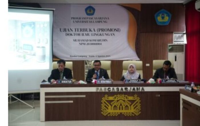 Sigerlink.com – Lampung, Program Studi Doktor Ilmu Lingkungan, Fakultas Pascasarjana Multidisiplin Universitas Lampung (Unila) kembali meluluskan seorang doktor melalui sidang terbuka promosi doktor atas nama Muhamad Komarudin. Sidang diselenggarakan di Aula Pascasarjana Unila, Senin, 4 Agustus 2025.